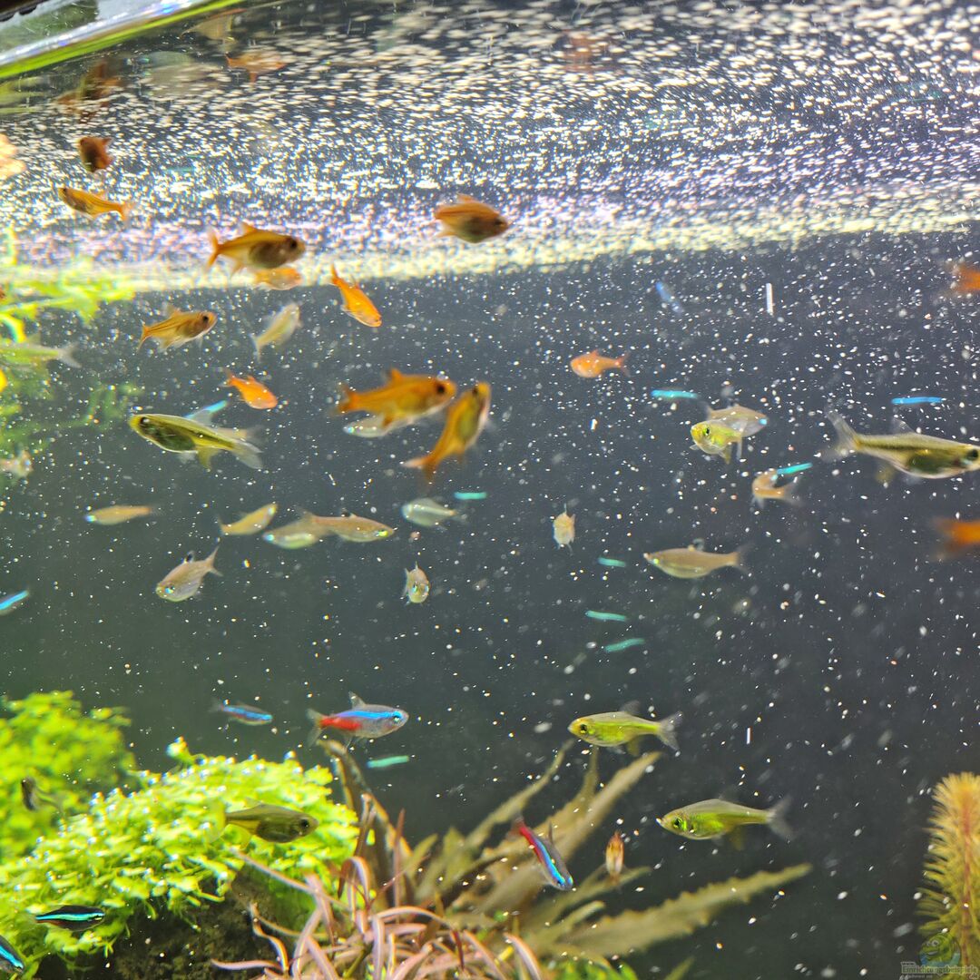 Stand: 21.12.2025 - ca. 70 - 80 blaue Neonsalmler - ca. 12 Neontetra - ca. 50 Augenfleckbärblinge - ca. 50 Funkensalmler (auch Feuersalmler genannt) - ca. 30 Microdevario kubotai - 6 Otocinclus sp. (hoppei?) - ca. 15 Amanogarnelen - unzählige Neocaridina davidi rot - Geweihschnecken - Stahlhelmschnecken -> als Beifang aus dem Handel habe ich 2 Querstreifenbärblinge dabei, die sehr hübsch sind (werde ich vermutlich aufstocken).