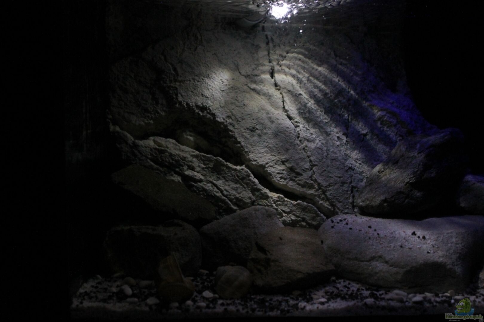 Aufzucht-und Quarantänebecken. Sekundärbecken zum EB ..tales from the lake.. Im Unterschrank des Hauptbeckens stehend läuft dieses parallel mit um Nachwuchs aufzunehmen, oder zur Behandlung / Isolation von Einzelnen Tieren. Die Einrichtung ist trotz der reinen Zweckmä??igkeit optisch an die Geröllzone im Tanganjikasee angepasst.