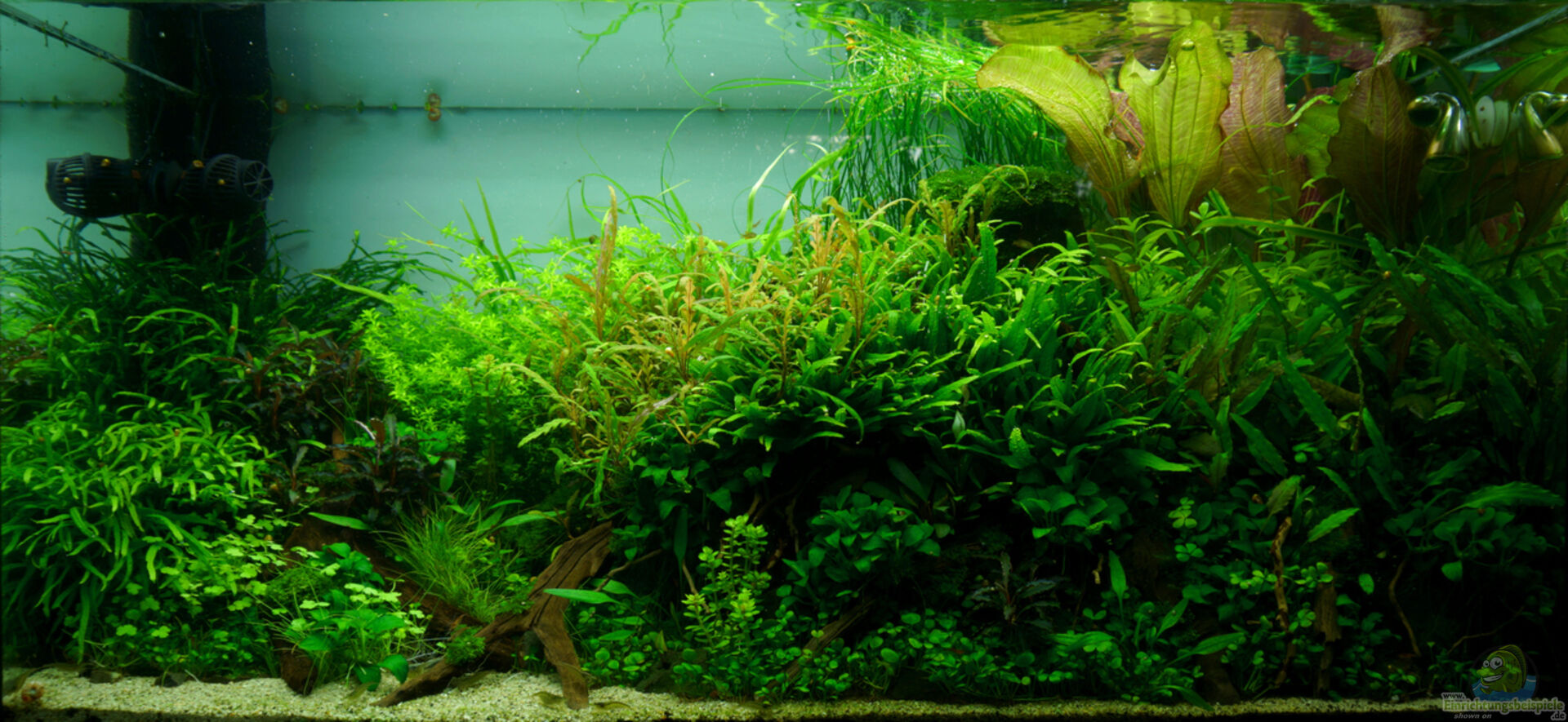 Das Aquarium ist vor allem ein Pflanzenbecken ohne gro??e Besonderheiten. Das Becken selbst ist ein über 15 Jahre altes Juwel-Standardbecken mit Längsstreben. An der Rückwand wurde eine selbstklebende Milchglasfolie aus dem Baumarkt angebracht.