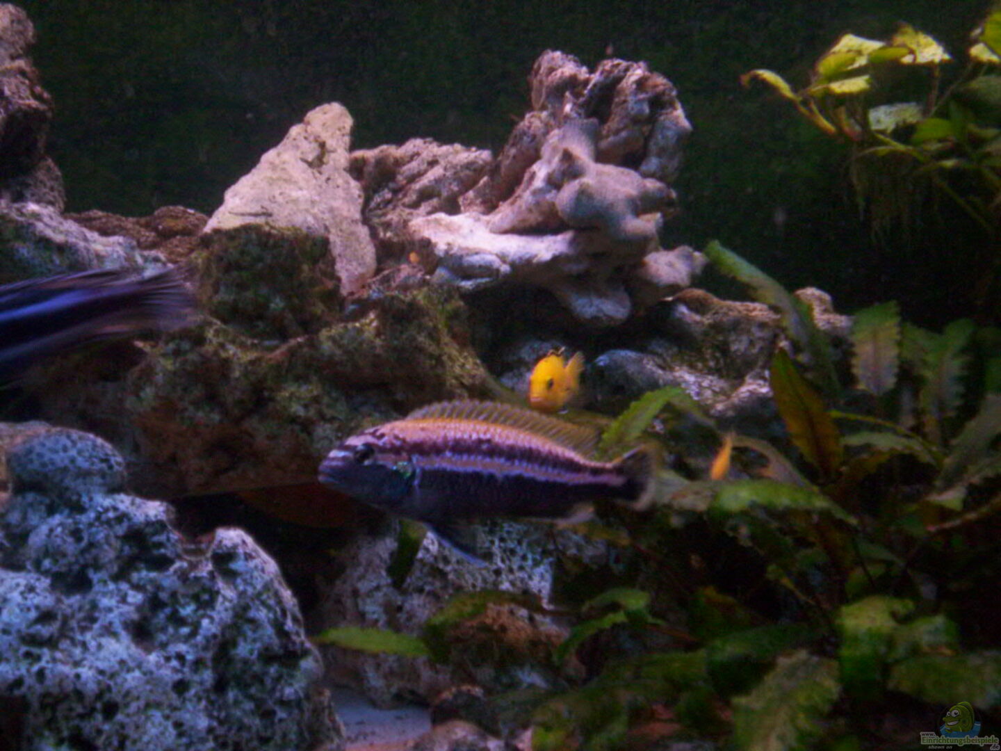 Labidochromis caeruleus; Yellow (3M/6W) + Jungtiere Melanochromis auratus; Türkisgoldbuntbarsch (1M/3W) + Jungtiere Melanochromis maingano (1M/3W)