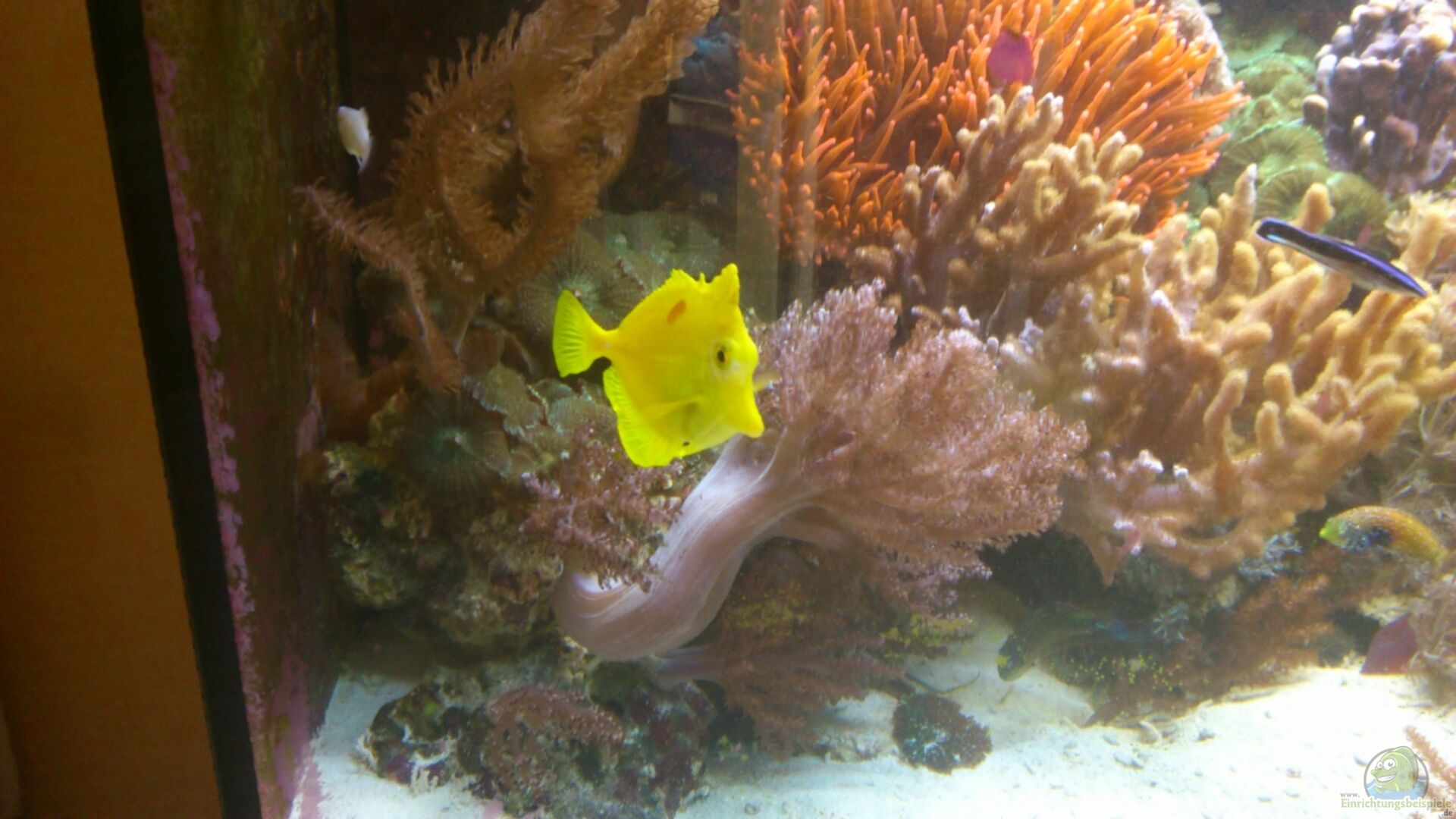 2 Zebrasoma flavescens, 2 Amphiprion ocellaris, 1 Cirrhilabrus flavidorsalis, 2 Labroides dimidiatus, 2Macropharyngodon bipartitus, 2 Valenciennea puellaris, 2 Cirrhitichthys falco, 2 Acreichthys tomentosus, 1 Gramma loreto, 2 Labroides dimidiatus, 1 Anampses twistii Diverse Weich-/Lederkorallen, z.B pumpende und nicht pumpende Xenien, Sarcophyton spec. div. Bäumchen, grüne Krustenanemonen, 2 rote Entacmaea quadricolor, Gorgonien, davon eine flächig wachsende Erythropodium caribaeorum uvm. Steinkorallen:z.B. [...]