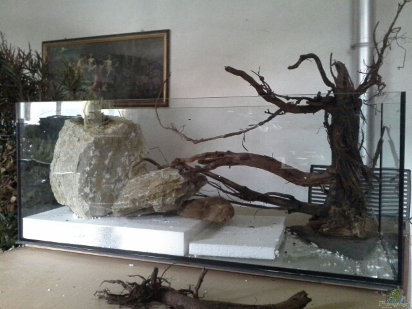Steine in unterschiedlichen Grö??en: Kalkstein und Sandstein Moorkienäste Laub Buchenzweige Insbesondere zwischen den Steinen ergeben sich Spalten und Unterstände, die teilweise durchschwommen werden können. Da das Becken von allen Seiten einsehbar ist, ergibt sich ein toller Anblick, wenn die Fische dies ausnutzen.