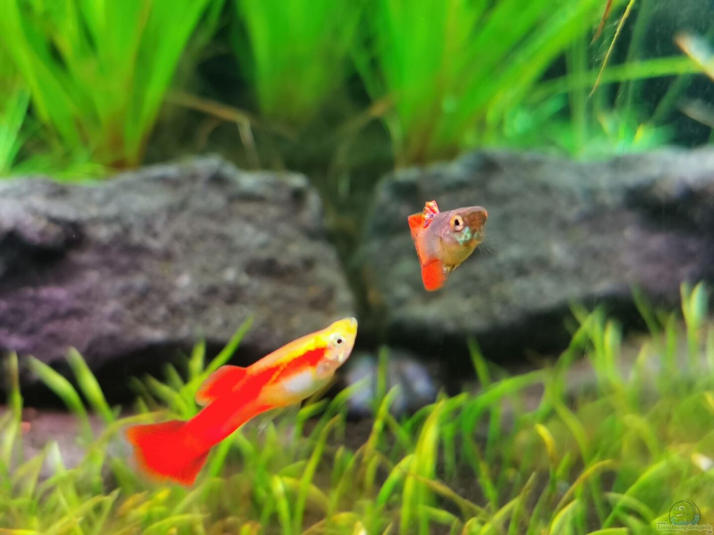 In diesem Aquarium sind folgende Tiere enthalten Als Hauptbesatz: - 20 Tanichthys albonubes gold (Kardinalsfisch) - ausselektierte Medaka aus meinen Zuchtlinien "Magie Red King" und "Platinum blue" Als Nebenbesatz: - Amanogarnelen - Neocaridina Garnelen und verschiedenen Farben - Posthornschnecken - Anthrazitnapfschnecke