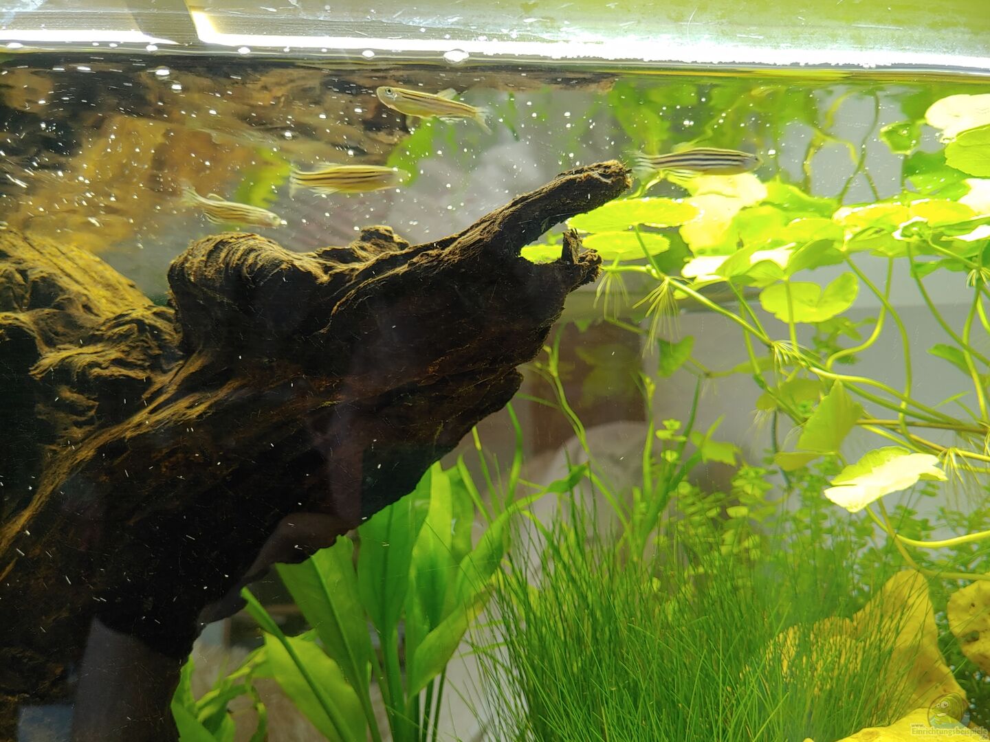 - 7 Zebrabärblinge (unsere "Versuchskaninchen und Starter-Fische") - 3 Perlhuhnbärblinge (Danio margaritatus) - 7 Schmucksalmler - 2 Hexenwelse (Rineloricaria fallax) - 8 Garnelen-rot (Neocaridina davidi) - 2 Nashorn-Garnelen (Caridina gracilirostris) - 1 Goldene Honig-Guramis (Colisa chuna) - 10 Amano Garnelen Im Nano-Cube: - 1 Zwergkrebs (Cambarellus patzcuarensis) - diverse kleine Schnecken