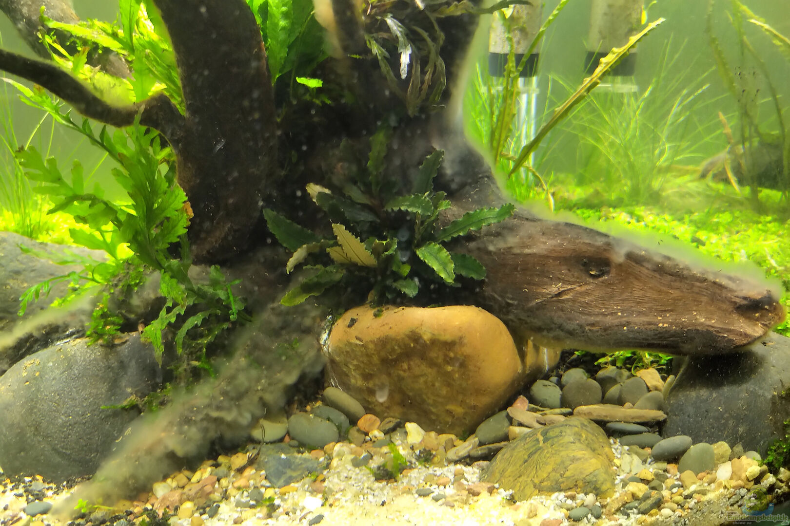 Aquarium: Dennerle Cube - 60 Liter Zielsetzung: Möglichst ´naturnahes´ Scape mit kaum sichtbarer Technik. Mich stören artifizielle Scapes mit schneewei??em Sand, perfekten Rasenlandschaften, monochromen Steinen etc. deshalb ist mein Vorbild nicht der japanische Zen-Garten, sondern eher der verwilderte Schrebergarten & man sollte den Eindruck gewinnen, da?? genau dies auch ein Ausschnitt aus der Natur sein könnte. Vorbild: Adam Paszczela - ADA Poland Idea Studio [...]