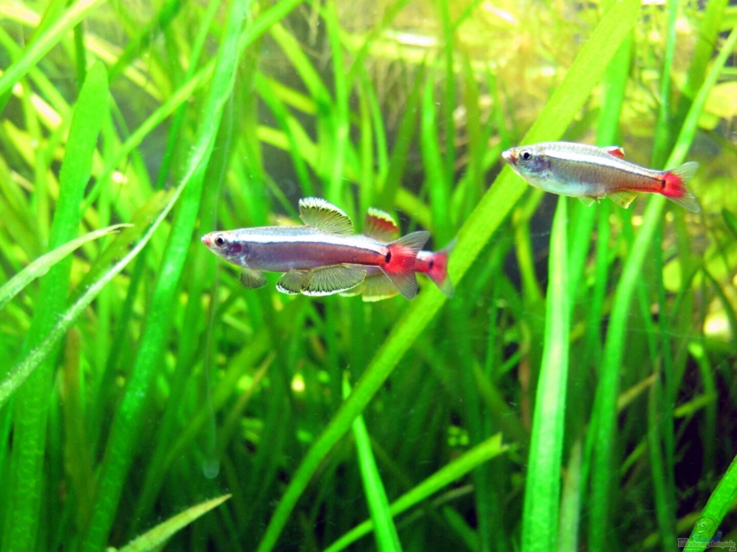10 Kardinalfische (Tanichthys albonubes), 5 Männchen 5 Gefleckte Panzerwelse (Corydoras ambiacus) 3 Platys (Xiphophorus maculatus), (noch) 3 Babyfische 2 Zwergkrallenfrösche (Hymenochirus boettgeri), vermutlich beides Weibchen 2 Rennschnecken (Neritina natalensis) War beim Fischbesatz in der Anzahl noch zurückhaltend.