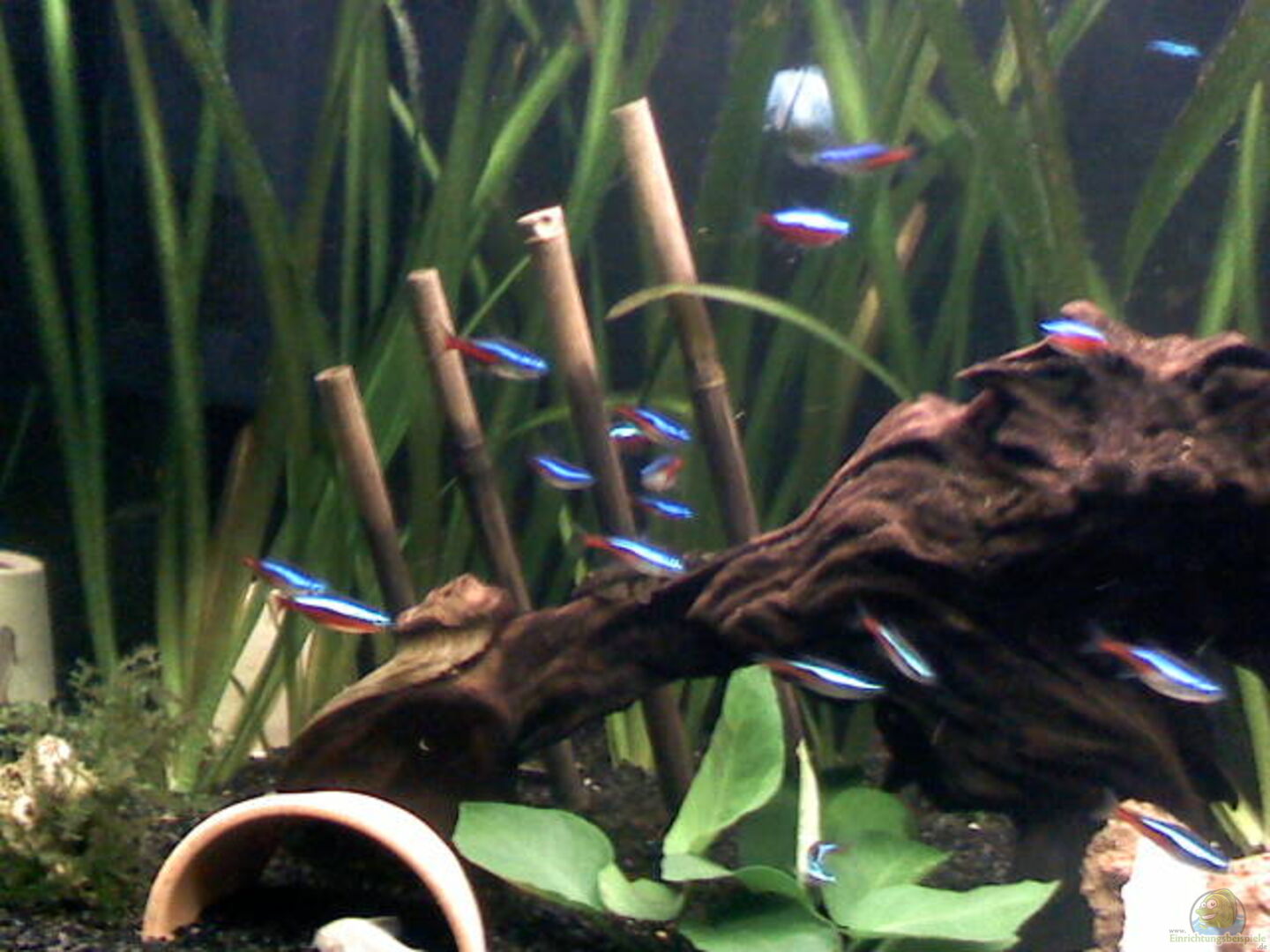1 gro??e und 1 kleinere Mangroven Wurzel 1 rote Moorwurzel 1 halbe Kokusnu?? 1 kleiner Blumentopf als Bruthöhle für unsere Barsche 2 halbierte Blumentöpfe die als Versteckmöglichkeit dienen mehrere Bambusstäbe und einen selbstgebauten Steineberg