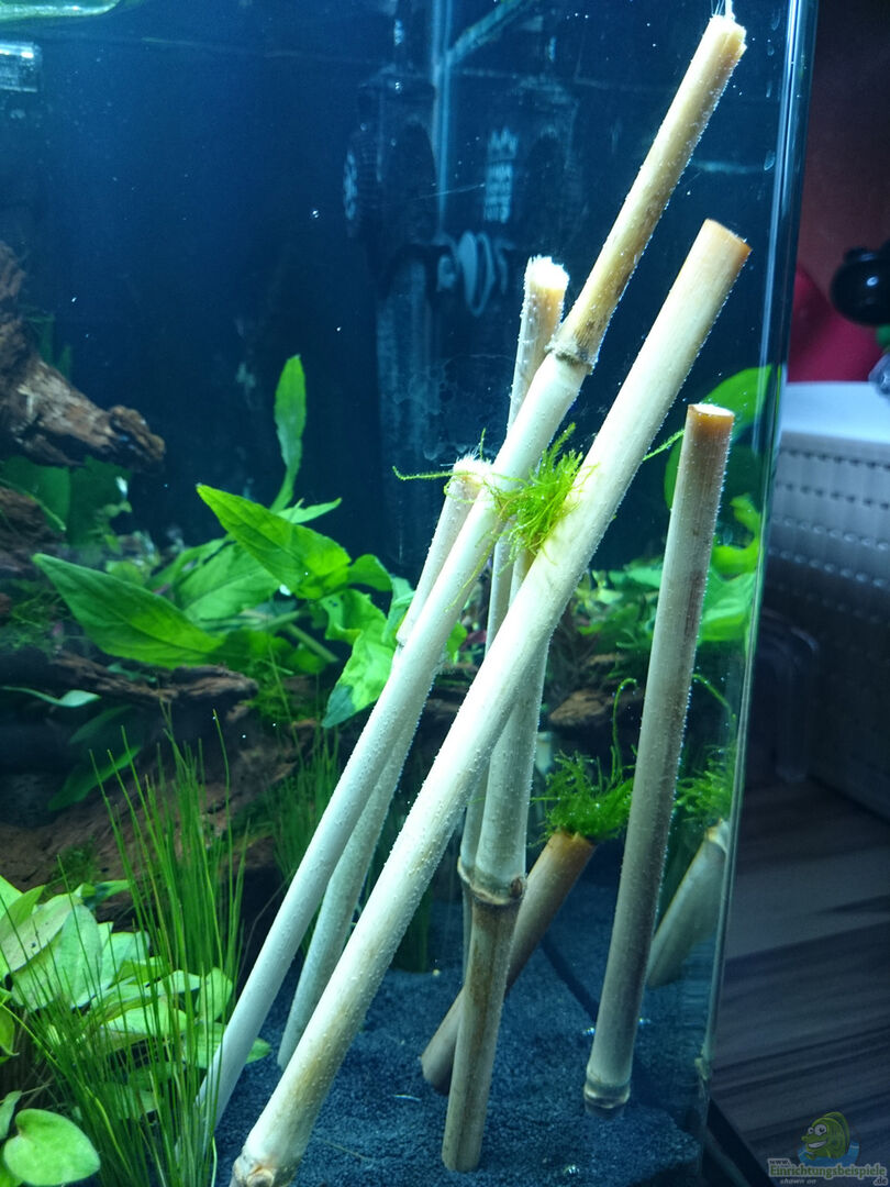 ??? 6 unterschiedlich gro??e Vulkansteine ??? 1 Mangroven-Wurzel ??? 1 Mini-Terrasse aus Bambus ??? 7 unterschiedlich lange Bambusstöcke ??? 2 kleine Stückchen wei??es Lochgestein (für die Schnecken zum Kalk aufnehmen)