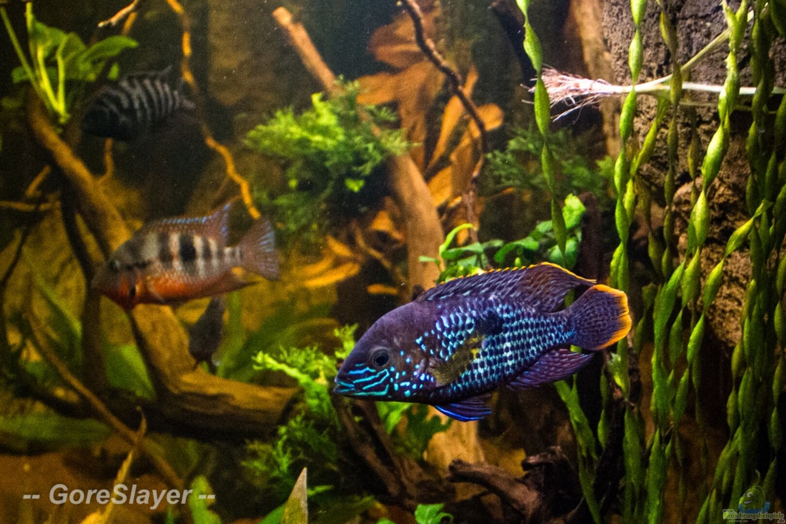 Aktueller Besatz: - 3x Chichlasoma meeki - Feuermaulbuntbarsch (2m, 1w) - 2x Ancistrus spec - Antennenwels (2m) - 6x Archocentrus nigrofasciatus (4m, 2w) - Grünflossenbuntbarsch -> davon jeweils 50% Farbvariante Weiss - 3x Andinoacara rivulatus - Goldsaumbuntbarsch (1m, 2w) Die Ancistrus wurden als ???Altlasten??? wieder mit eingesetzt, da sie bisher immer gut mit den Meekis harmonierten und ich mich ungern von Ihnen trennen wollte.