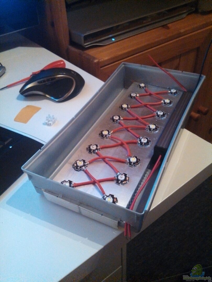 -Instant Ocean Salz von Aquarium Systems - ATI Salz -100 Watt Heizstab (einstellung auf 24°C) aus altem Boyu geklaut -Spindel mit Thermomenter von Aqua Medic -Steht auf Schreibtisch mit Schaumstoffunterlage -Schwarze Rückwandfolie