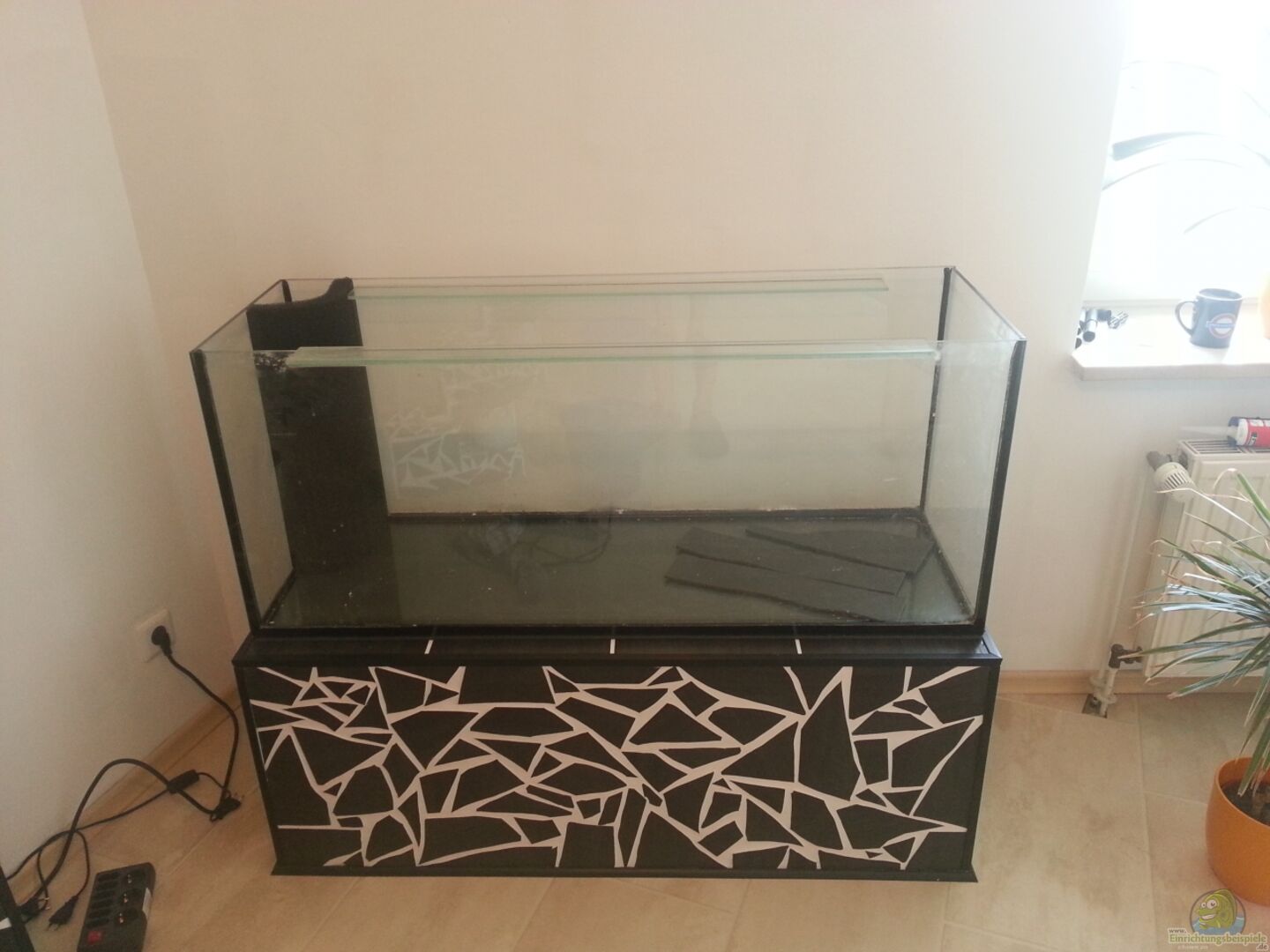 Der Unterbau ist aus Ytongsteinen, schwarz geflie?? gebaut worden. Dieser ist dann mit schwarzen Fliesen verkleidet, die ich in mühseliger Arbeit in kleine Bruchstücke zertrümmert habe. Eine flächige Verkleidung wollte ich nicht. Für die Stellfäche des Beckens habe ich selbstveständlich komplette Fliesen verarbeitet. Das Ganze ist dann mit wei??er Fugenmasse verfugt worden. Es sollte etwas besonderes werden. das Ergebnis gefällt mir sehr gut.
