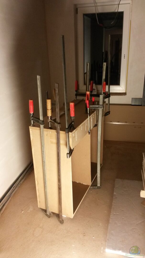 - Zu- und Abwasserversorgung im Schrank installiert (inkl. Warmwassermischbatterie zur einfachen Durchführung des Wasserwechsels). - Becken oben offen - Unterschrank selbst gebaut