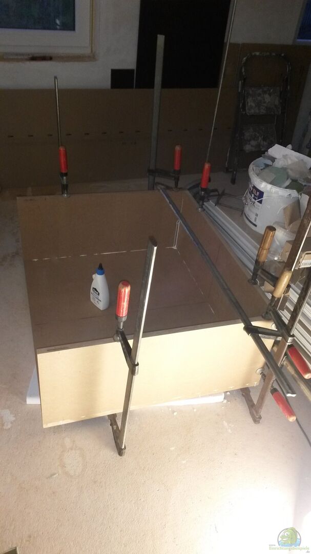 - Zu- und Abwasserversorgung im Schrank installiert (inkl. Warmwassermischbatterie zur einfachen Durchführung des Wasserwechsels). - Becken oben offen - Unterschrank selbst gebaut