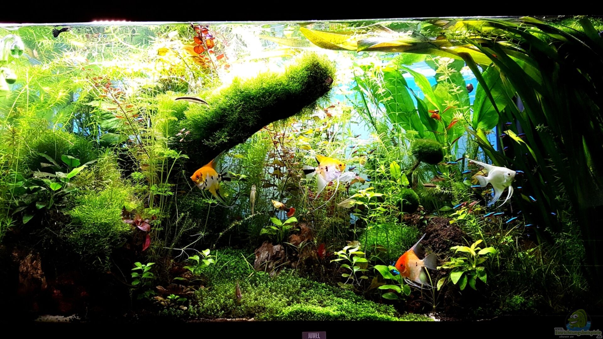 Das Hardscape wurde primär aus Islandlava/Drachenstein und Moorwood gestaltet. Die Lava wurde auf der linken Seite so angeordnet, dass diverse Versteckmöglichkeiten entstanden sind. Auf der rechten Hälfte des Beckens wurde eine kleine Schlucht aus der Lava gestaltet und darüber eine Wurzel platziert, damit auch hier ein Unterstand für meine Bewohner vorhanden ist. Durch den Einsatz von Sand, Schieferplatten und diversen Kleinkram, ist unter dem Innenfilter eine weitere Bruthöhle entstanden. [...]