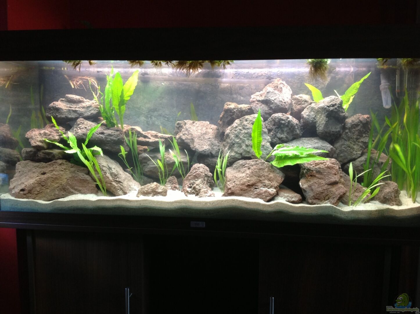 Beim Becken handelt es sich um ein Juwel Rio 240 in dunkelbraun. Es ist gebraucht gekauft und der Innenfilter wurde von mir ausgebaut und gegen einen Au??enfilter von Tetratec ersetzt. Als Hintergrund dient eine einfache Folie aus dem Baumarkt mit Felsmaserung.