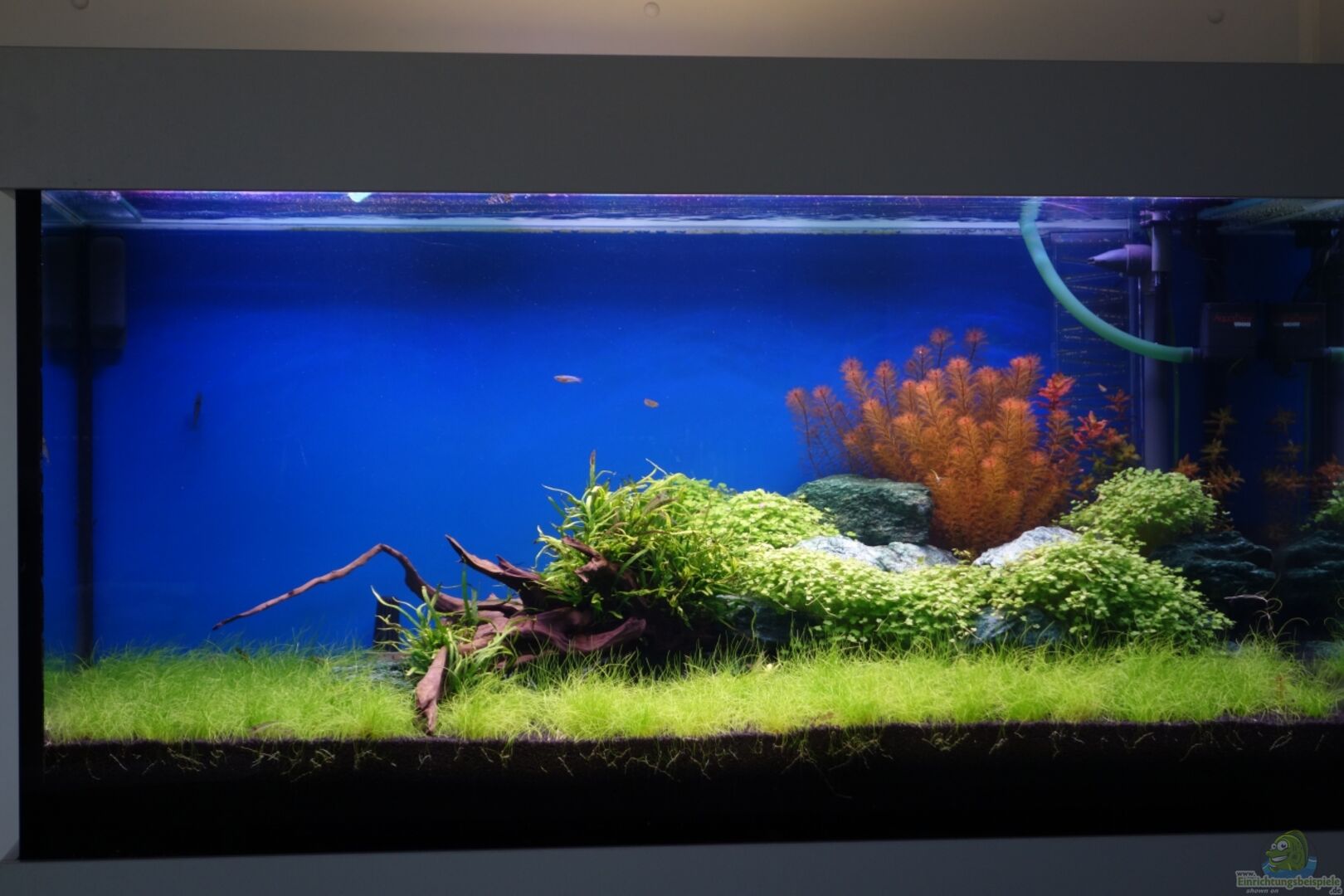 Umzug des Beckens am 25.01.2013 an seinen neuen Platz. Beginn der Neueinrichtung des Becken am 01.02.2013 Anfertigung des Becken durch meinen Händler Fischer Fische in Schwieberdingen im Jahr 2007 mit 12 mm Floatglas. Verrohrung PVC durch die Bodenscheibe. Unterschrank und Blende als Anfertigung durch meinen Freund.