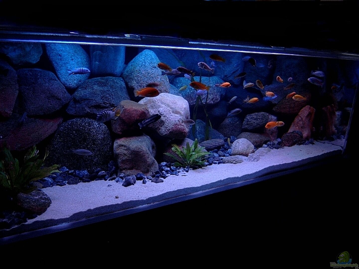 Das Becken beseht nicht mehr so, soll nur als Beispiel dienen!!!!! Das Aquarium steht im Hobbykeller.Die Scheiben sind vom Glaser, verklebt habe ich sie selber.Lampenkasten, Unterbau aus Ziegel und Vierkantstahl ist auch Eigenbau.Bodenscheibe besteht aus drei Teilen.