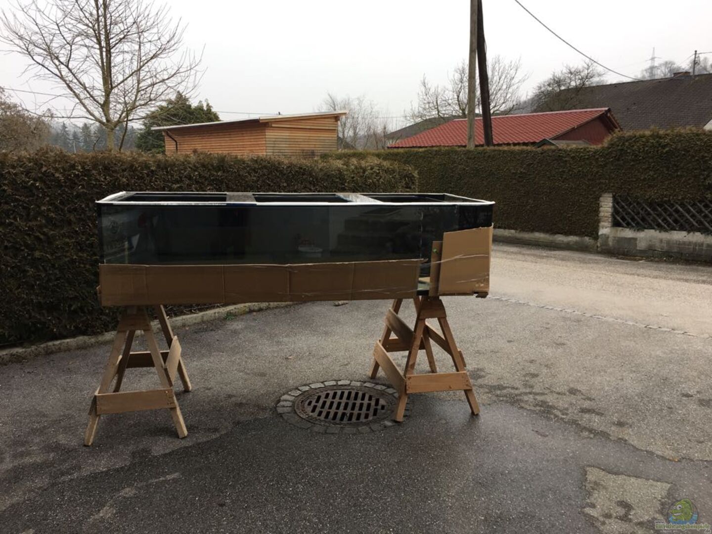 - Unterschrank selbst gebaut aus 40x40 mm Nierosterstahl - Aufbau : Fallschutzmatte - Siebdruckplatte 21mm - Unterschrank - Dachfolie - Siebdruckplatte 21mm - Aquariumunterlagsmatte - Becken - Bohrung im Boden für Wasserwechsel - Mehrkammerinnenfilter mit 4 Kammern über die ganze Tiefe - Becken wurde genau nach meinen Wünschen angefertigt und bis vors Haus geliefert > mit 6 Mann und meiner Ehefrau kam Becken schlie??lich durchs Fenster in den richtigen Raum