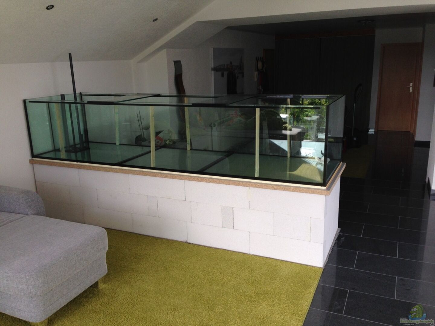 Das Becken wurde nach meinem Umzug in eine neue Wohnung aufgelöst. Es dienst lediglich der Inspiration und Darstellung wie man einen Raumteiler mit Besatz gestalten könnte. Sonderanfertigung der Firma Aquariumbau Ennigerloh Das Becken hat eine Kantenlänge von 300 cm und soll als Raumteiler von Wohnzimmer und Küche/Esszimmer dienen. Dabei besteht das Becken aus Aquadecor Modulen. 300 cm lang x 80 cm tief x 60 cm hoch Sto?? und Wulst verklebt, 15 mm Floatglas Der Aquariumschrank [...]