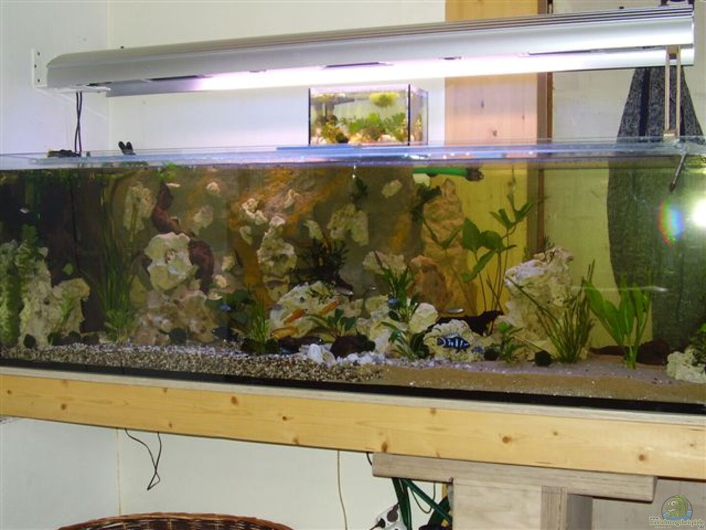 Hier kommt ein : *** AfrikaGesellschaftsBecken *** Weisglas Becken Es sieht alles viel klarer aus, durch das Weisglas. Becken oben offen, ohne Abdeckung. 13mm Sto??verklebt. Unterbau selber gemacht. 2 Dicke Leimbinder links in die Wand eingelassen. Rechts nur eine Auflage aus ca 5cm dicken Leinbinderplatten. Auf den Leimbindern liegt eine 2, 1cm dicke Leimbinderplatte, worauf noch 6mm Schaumstoffunterlage liegen um das Becken optimal aufliegen zu lassen. Die rechte Seite [...]