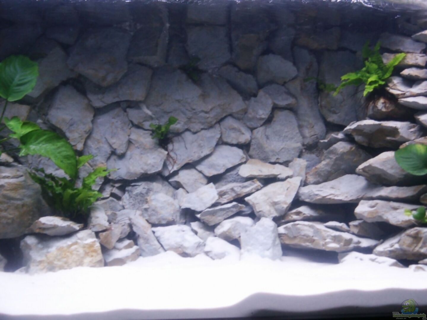 Standartbecken von 300 L Eigenbau der Rückwand ( Styropor , Steine , Fliesenkleber , Aq-Silicon )