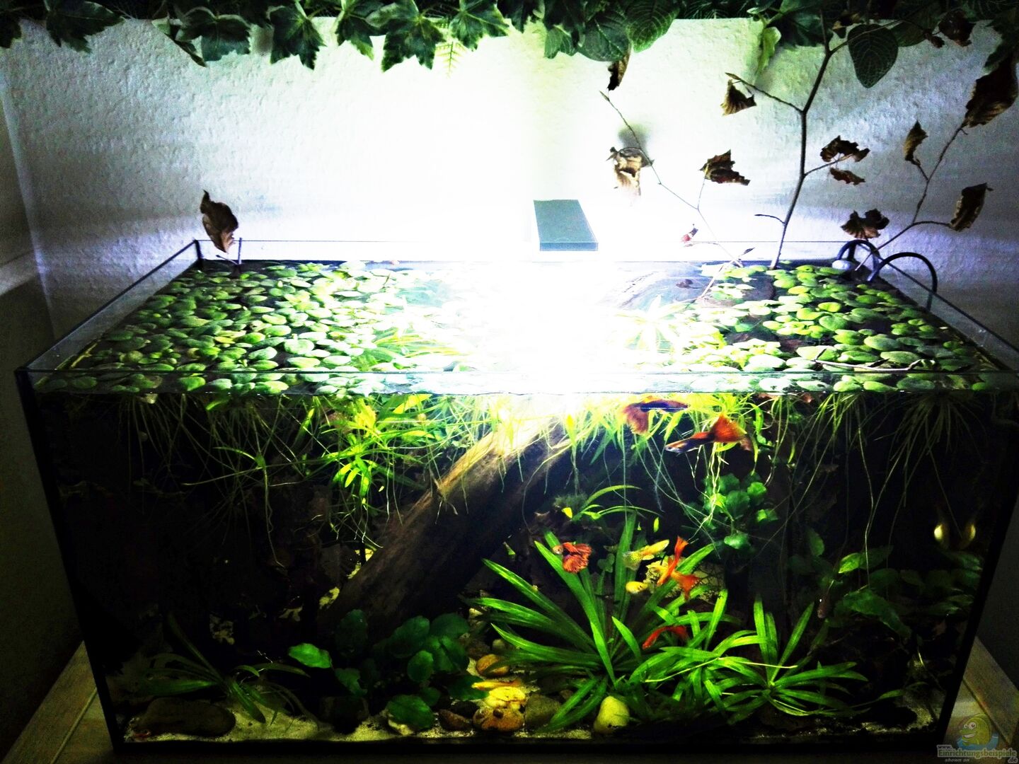 Standard 54 Liter Becken von Dehner "Aquarium Set Scout" inkl. Beleuchtung, Innenfilter und Heizstab. Aufgebaut ist das Becken im Flur auf ein Kallax Regal von Ikea. Die Abdeckung habe ich am 12.02.2020 entfernt. Die vorhandene Beleuchtung habe ich dann durch eine LED Lampe ersetzt (siehe Thema Beleuchtung). Die Seitenwände und die Rückwand des Beckens sind mit schwarzen Pappkarton verklebt. Die Wand über dem Aquarium habe ich mit Pflanzmatten (künstlich) von Ikea verkleidet. [...]