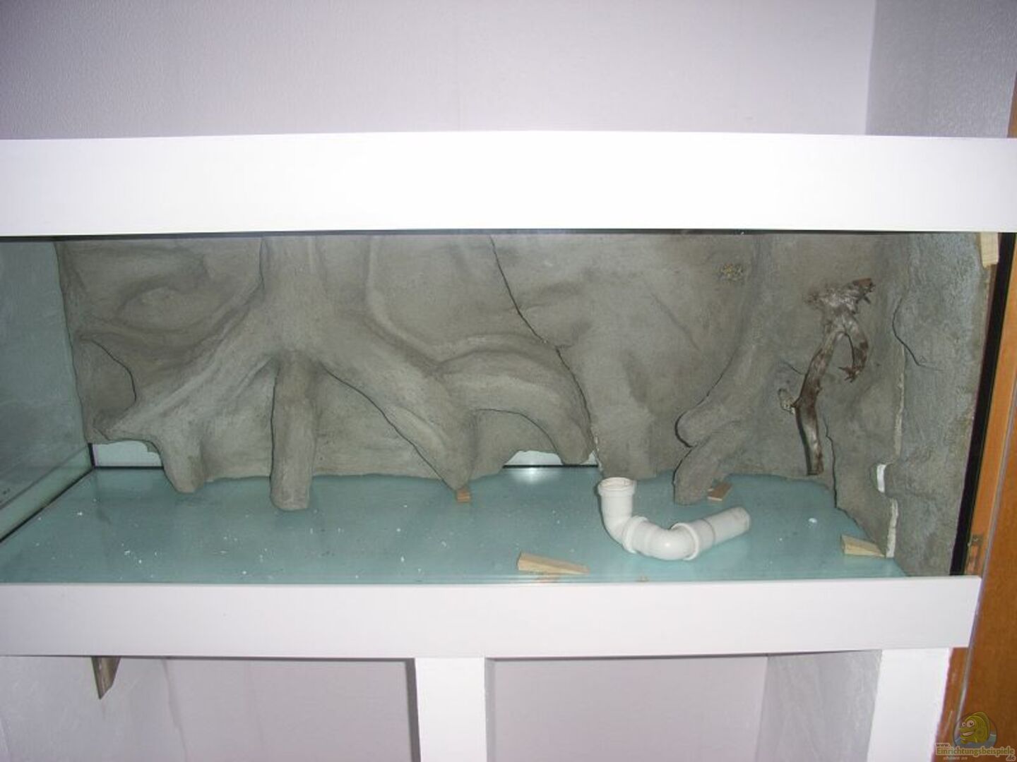 Selbstgeklebtes ??berlaufbecken Selbst gebaute Rückwand Unterbau aus Gipsdielen gemauert