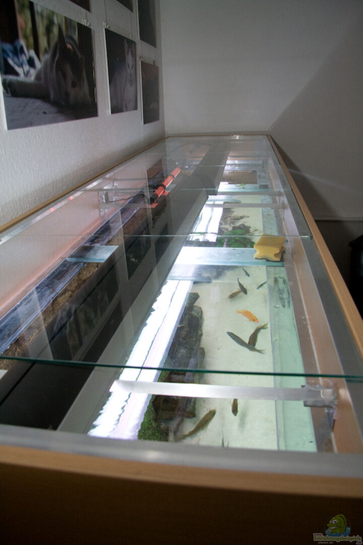 Schrank, Abdeckung, Beleuchtung alles selbst gebaut. In Abdeckung Zu & Ablauf für Wasserwechsel (Anschlussstutzen für Pumpe zum Ablaufen und Gartenschlauch für Frischwasser) Da Schränke in der Grö??enordnung sehr viel Kosten würden, habe ich mir Gedanken über einen kpl. Eigenbau gemacht (Au??er das Becken selbst - zu gefährlich) Nach etlichen Herumsuchen habe ich dann die Lösung gefunden. Man nehme Vierkantrohr 40 x 40 x 3 mm, Schneide alles auf das Passende Ma??, dann schwei??t [...]