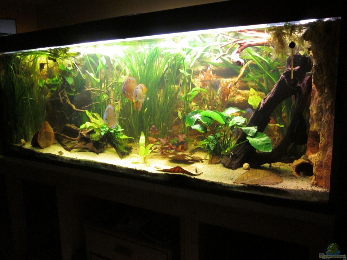 Aquarium von Aquarienkontor.de. 15mm Floatglas, Sto??verklebung. Keinerlei Lochbohrungen etc. Der Unterschrank wurde von einem Kollegen (moses, eventuell bekannt aus diversen Foren zum Thema Aquaristik) gezimmert. Beim Bau wurde er absichtlich 50 cm länger gemacht, um eventuell ein 2, 5 m Becken darauf stellen zu können. -> derzeit noch nicht verkleidet. Geplant ist eine Verkleidung in Esche.