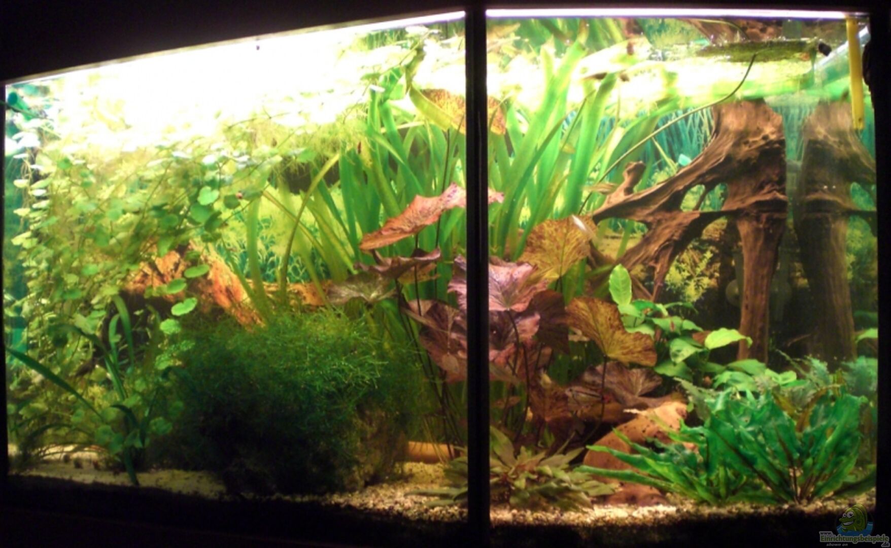 Das Becken wurde als Sonderanfertigung ersteigert, deswegen auch die spezielle, der örtlichen Umgebung angepasste Form. Die Glasstärke beträgt 10mm, und die Bodenplatte 15mm.