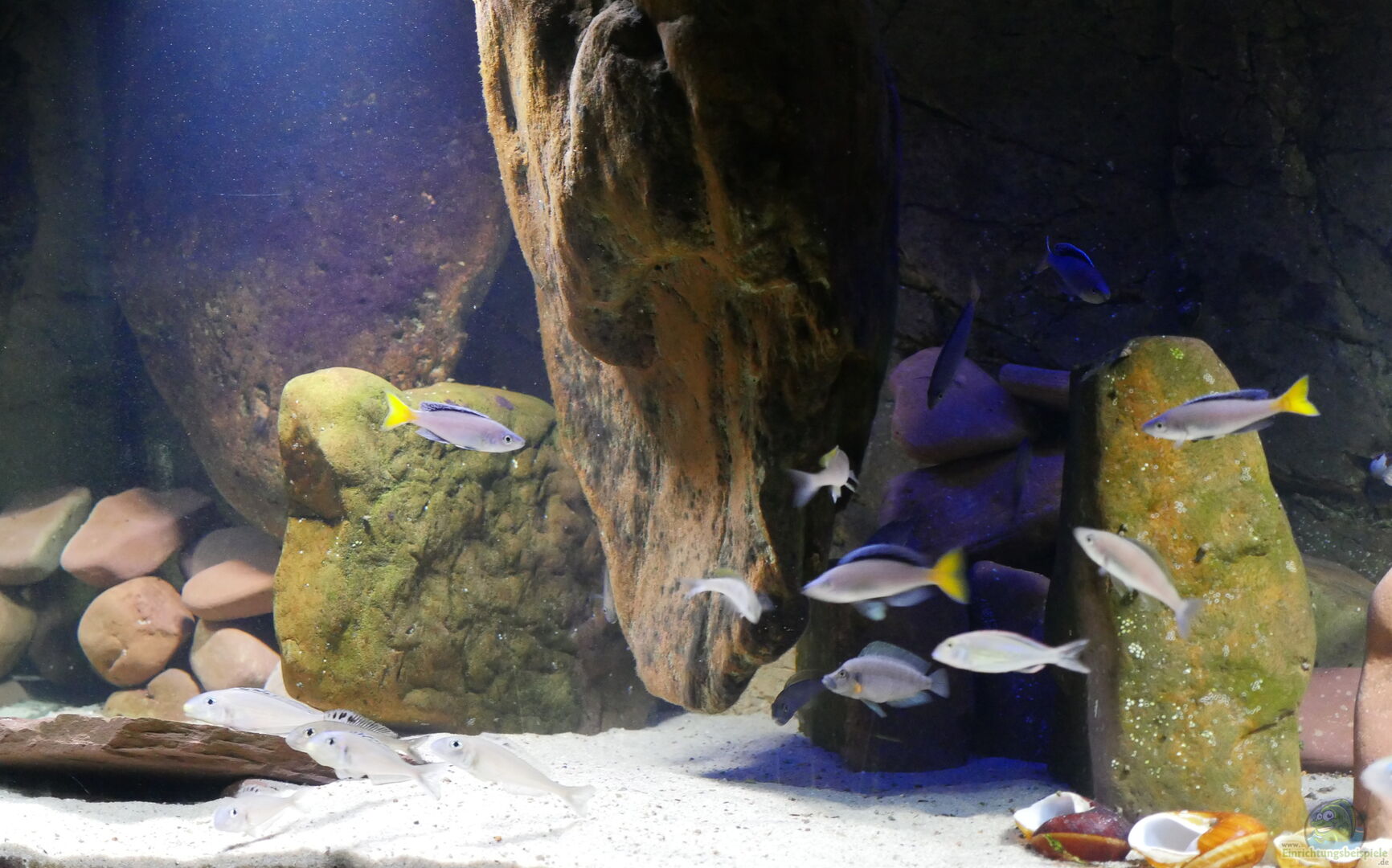 Standardbecken der Firma Aquarienkontor aus Haltern am See - Glasstärke 12 mm, Front- und Seitenscheiben aus Wei??glas - Unterbau aus Aluminiumprofilen mit Scherwänden aus 15mm starken Siebdruckplatten - Eingeklebte Back to nature Slimline Red Gneis Rückwand. Ziel des Projekts war es, steile Felswände (Rückwand und hängende Felsmodule) als Lebensraum für Cyprichromis sowie eine durch stehende Felsen gut gegliederte (Reviergrenzen), sandreiche ??bergangszone nachzubilden, in der sich [...]