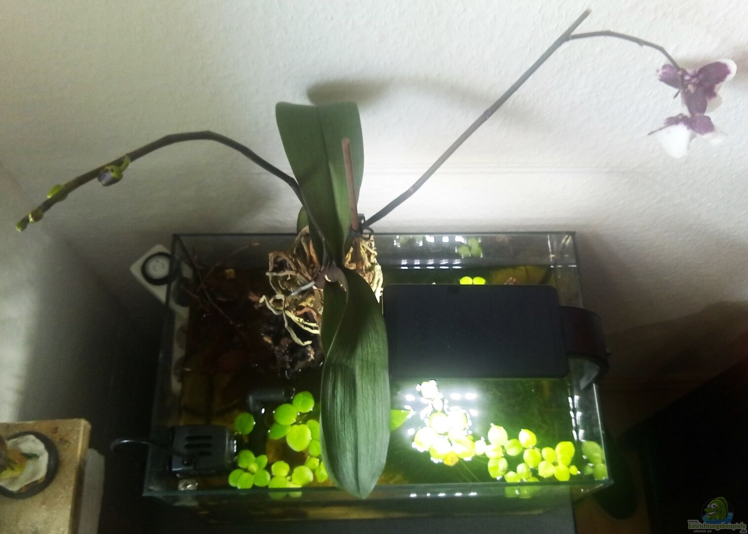 Beckenansicht von oben, mit der Emersen Orchidee auf der Moorwurzel von David Schneider Aquaristik (2)
