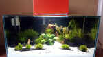 Dieses ist ein Blau "Cubic Nano"Aquarium. Es hat abgerundete Kanten im vorderen Bereich. Diese sorgen für eine schöne Frontalansicht. Das Aquarium wurde im Wohnzimmer auf einem Sideboard aufgestellt.