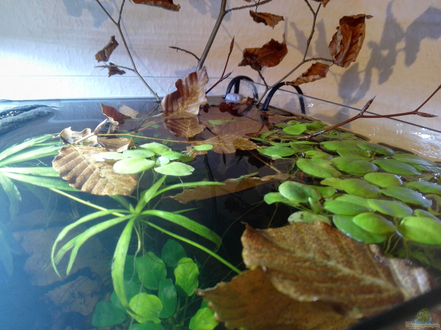 Standard 54 Liter Becken von Dehner "Aquarium Set Scout" inkl. Beleuchtung, Innenfilter und Heizstab. Aufgebaut ist das Becken im Flur auf ein Kallax Regal von Ikea. Die Abdeckung habe ich am 12.02.2020 entfernt. Die vorhandene Beleuchtung habe ich dann durch eine LED Lampe ersetzt (siehe Thema Beleuchtung). Die Seitenwände und die Rückwand des Beckens sind mit schwarzen Pappkarton verklebt. Die Wand über dem Aquarium habe ich mit Pflanzmatten (künstlich) von Ikea verkleidet. [...]