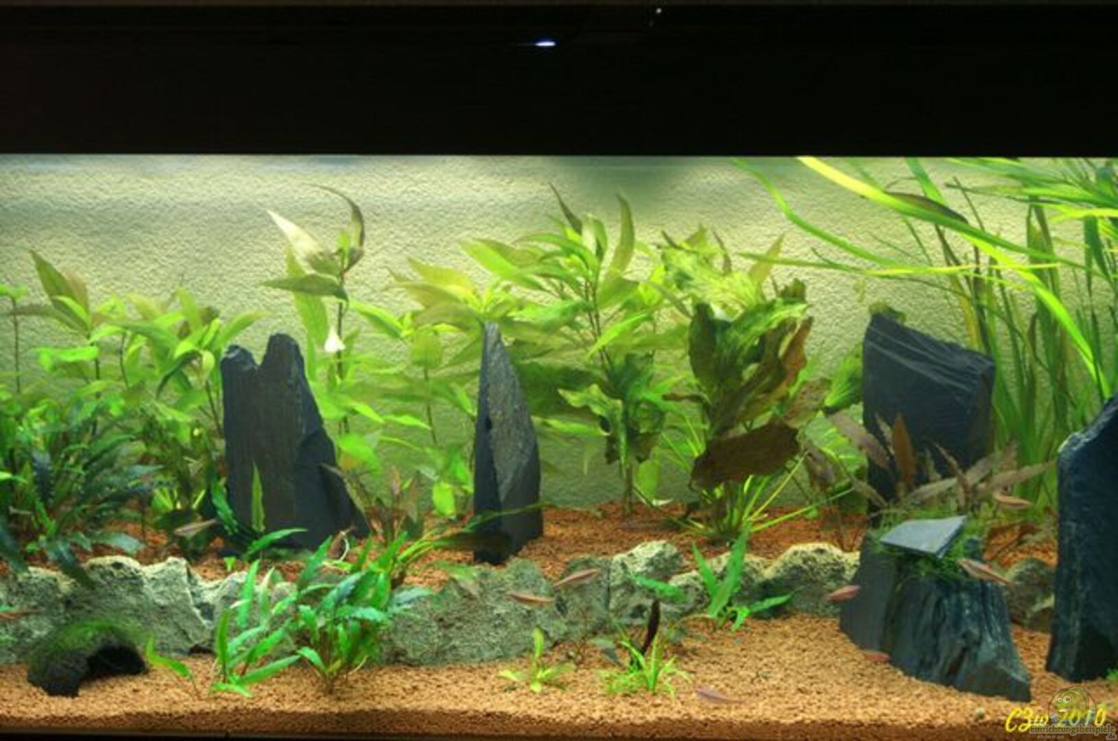 Hier findest du Infos über Vallisneria spiralis (Glattblättrige Sumpfschraube) und Beispiele für Bepflanzung deines Aquariums mit dieser Pflanze.