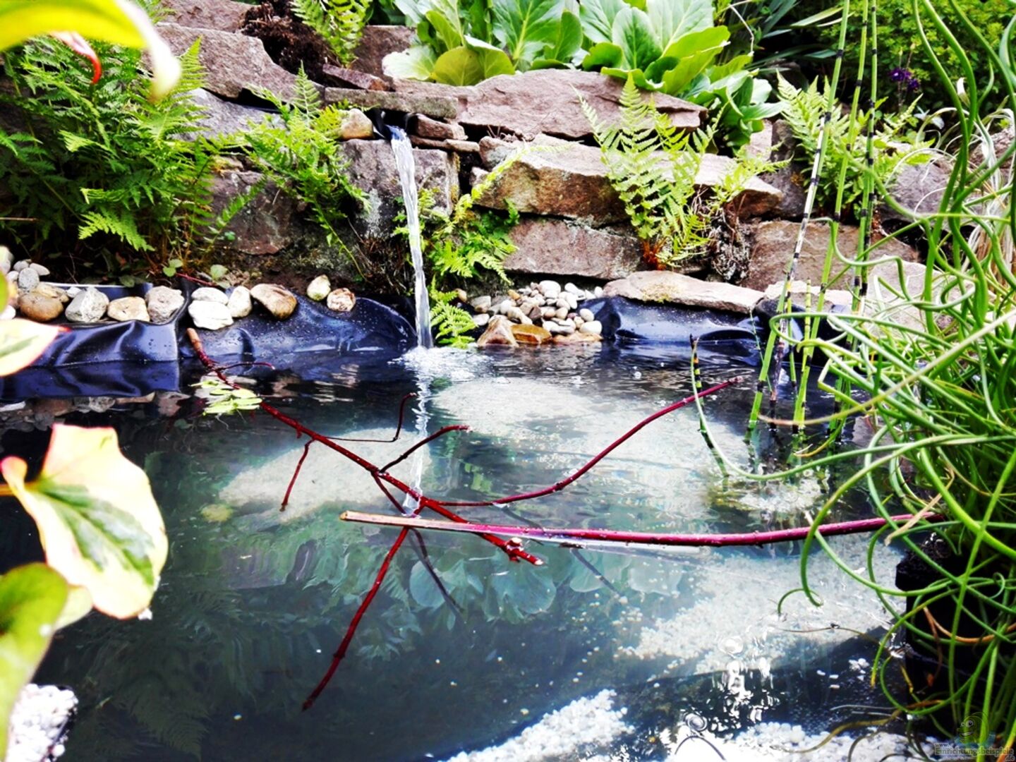 Die Tiefe des Teichs ist in verschiedenen Höhen aufgeteilt. Die Tiefen der einzelnen Podeste varieren von ca. 5 cm bis zur tiefsten Stelle bei rd. 50 cm. Zur Sauerstoffanreicherung habe ich einen Bachlauf im Anhang angelegt, dort flie??st das Wasser mit unterschiedlichen Flie??geschwindigkeiten den Hang ab und landet zuletzt als kleiner Wasserfall in den Teich. Der Teich dient in den Frühjahr bis Herbstmonaten als Projekt in der "Outdooraquaristik". Geplant ist dort Zierfische und [...]