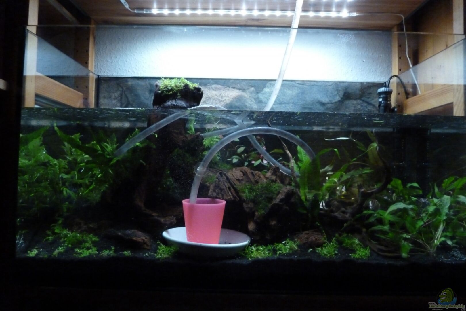 Das Aquarium steht in einem umgebauten und verstärktem IKEA IVAR Regal. Die Abdeckung musste mein Papa ;-) auch selbst bauen, weil zwischen dem AQ und den seitlichen Regalpfosten nur wenige Millimeter Abstand bleiben. Deswegen kann ich keine normalen Plastikabdeckungen nehmen, da diese seitlich breiter als das Becken sind. Allerdings sieht es einfach genial aus, wie das Becken perfekt ins Regal passt. Für die Abdeckung haben wir einen mit PVC-Platten beklebten Holzrahmen auf die Hintere und [...]