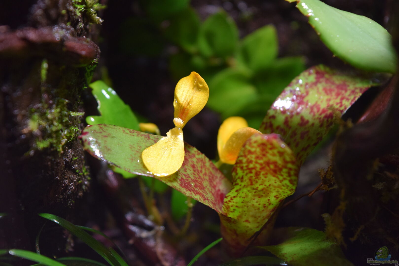 Ranken: Marcgravia umbellata, Ficus spec. Borneo, Ficus quercifolia, Pyrrosia nummularifolia, Rhapidophora hayi Bromelien: Neoreglia Akeso, Neoregelia liliputiana, Neoregelia Atlantis Farne und Bodendecker: Taxiphyllum Spiky, Hydrocotyle tripartia Mini, Begonia prismatocarpa, Ophiopogon japonicum Orchideen: Macodes petola