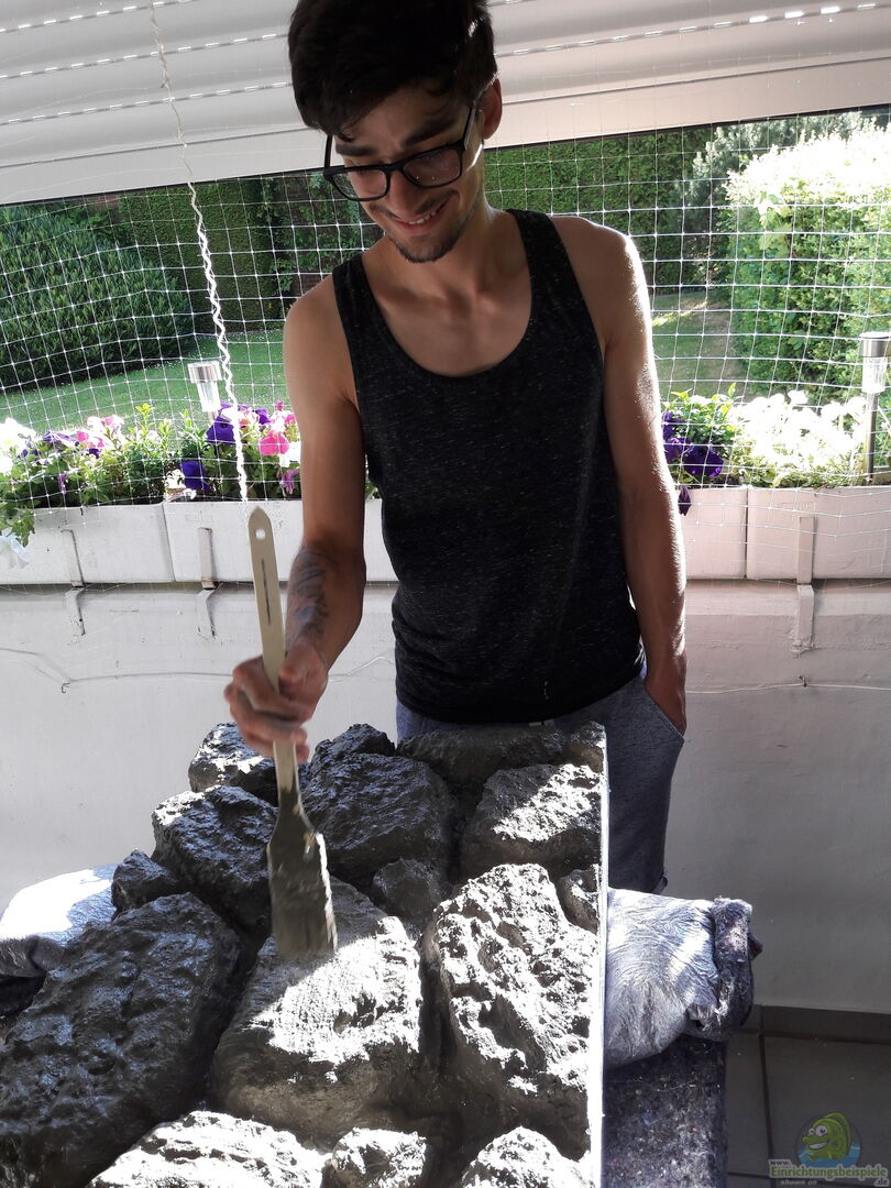 Steht auf auf einem Alugestell . Abdeckung ist von mir selbst gebaut, ist aber noch in Bearbeitung.( Heisst muss nochmal ran da mal wieder sparen wollte und Sperrholz als Abdeckplatte genommen habe :). ) Nicht weiter schlimm jetzt halt mit Acrylglas .