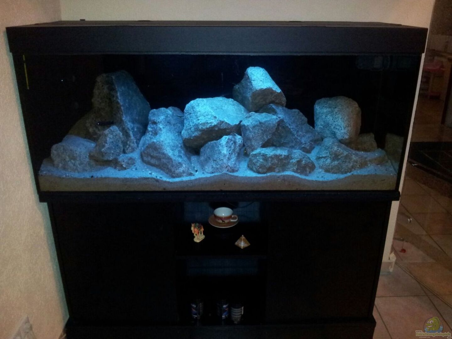 JUWEL RIO 400 Kombination mit passendem Unterschrank dazu (in Schwarz) Als Rückwand ist eine schwarze d-c-Fix Folie angebracht.