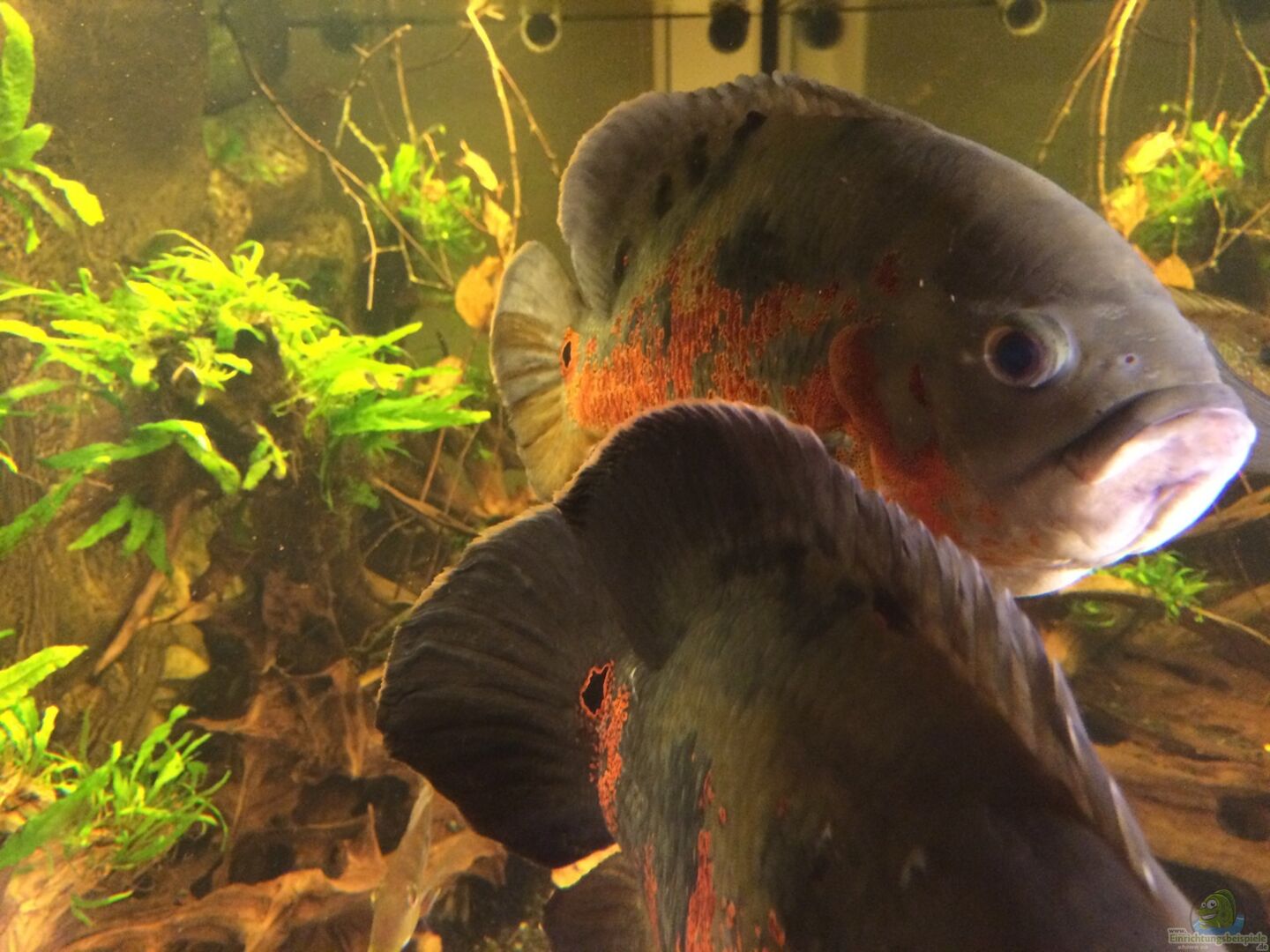 Wie der Name schon sagt ist der "Hauptbesatz" ein Pärchen Astronotus ocellatus. wahrscheinlich "Bahia Red". Diese pflege ich jetzt seit 2 Jahren, nachdem ich sie als fast adulte Tiere aus einer 6er Gruppe übernommen habe. Sie haben noch nicht geleicht, da Sie aber seit damals gut miteinander auskommen, denke ich es ist ein Pärchen. Es befinden sich auch noch ein Pärchen Satanoperca sp. "Redlip" (18 cm, ca 5 Jahre alt) und eine Gruppe Geophagus winemilleri [...]