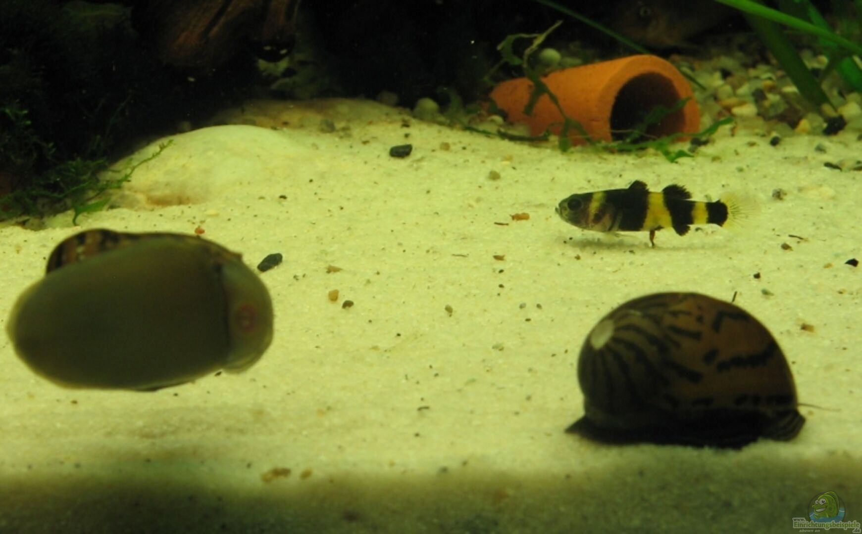 Fische: >< )))°> 6, 8, 20- Platy (Xiphophorus maculatus) >< )))°> 0, 0, 7 - Metallpanzerwels (Corydoras aeneus) >< )))°> 1, 3, 0 - Mosaikfadenfisch (Trichogaster leeri) >< )))°> 0, 0, 2 - Siamesische Saugschmerle (Gyrinocheilus aymonieri) >< )))°> 0, 0, 2 - Siamesische Rüsselbarbe (Crossocheilus siamensis) >< )))°> 0, 0, 2 - Dornauge (Pangio kuhlii) >< )))°> 2, 1, 0 - Antennenwels (Ancitrus sp.) Wirbellose Tiere _@_° 0, 0, 2 - Zebrarennschnecken (Neritina [...]