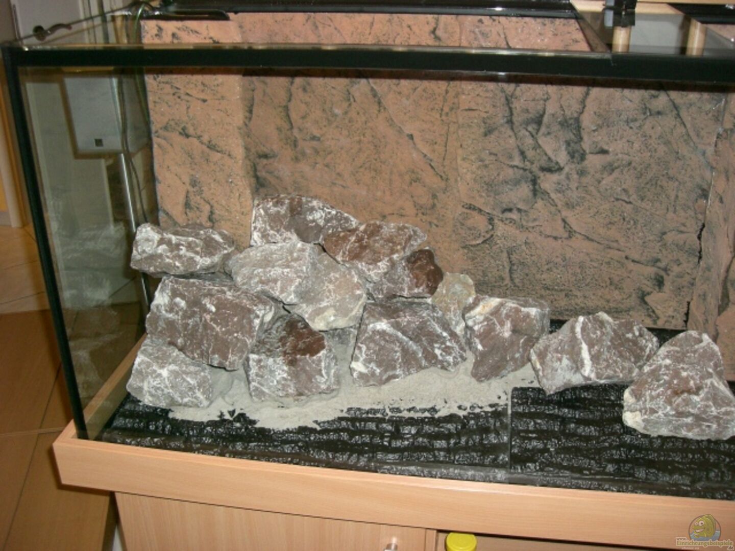 10mm Glasbecken wulstverklebt mit Sicherheitsnaht und passendem Unterschrank und Abdeckung in Buche Optik. Zusätzliche Glasabdeckungen ( mit Futterluke ) zwischen AQ und Abdeckung zum Schutz der Beleuchtung. Glasabdeckungen über den Innenfilter sind zusätzlich noch abgedunkelt. Danke an Aquariumbauer Hans Schiwitz ( www.regnitztal-aquarium.de ) und Händler meines Vertrauens :-)