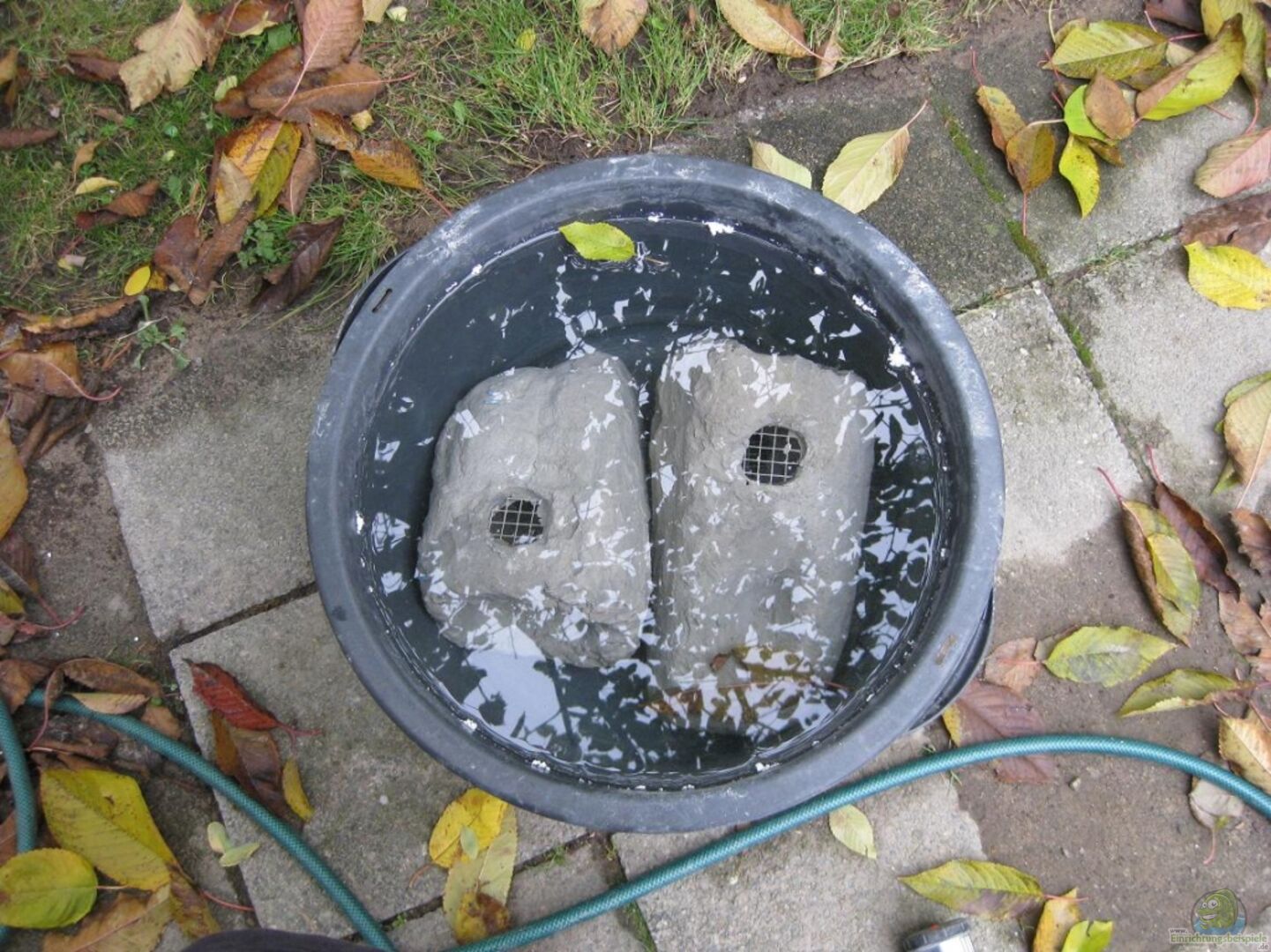 gut über 100kilo schwarzer Basalt der vom vorderen Drittel bis über die Wasseroberfläche nach hinten hin gestapelt wurde und mit ausreichend Rückzugsmöglichkeiten für die Barsche versehen ist. Die Steine liegen auf 8mm PMMA Scheiben um den Druck gleichmä??iger zu verteilen. Geschäumte Seitenwände im Rifflook *sind von hinten mit einer Oberfräse eingefräst um die Edelstahlleitungen zu verbergen und mit Aquariensilikon eingeklebt Im Bau: Zwei Steine um die Strömungspumpen [...]