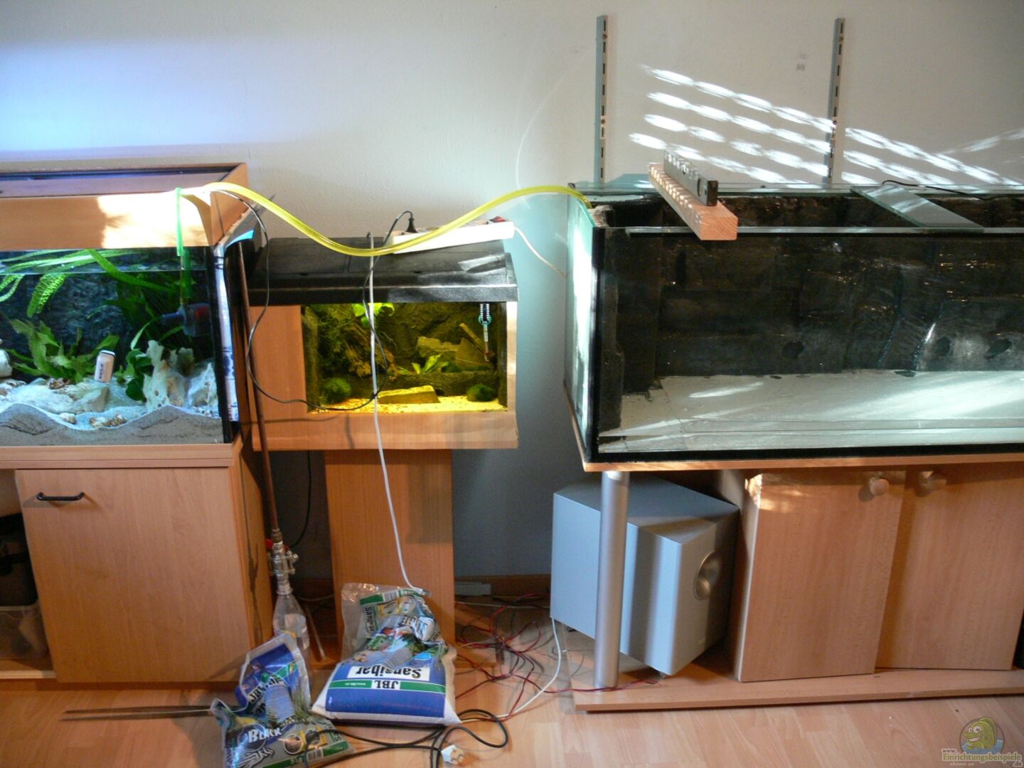 selbstgebaute Rückwand, ehemaliges showaquarium, eine 5mm Polystyrol Glatt klar Platte aus den Baumarkt als Abdeckscheibe, Zum schutz eine 0, 5 cm styropor auf der Bodenscheibe geklebt. Auf den Styropor eine angepasste 4mm Plexiglasplatte (Polystyrol Glat). Sie soll das Gewicht der Basaltbruchs gleichmässig verteilen.