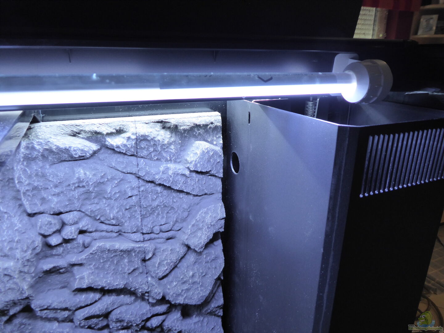 Als Rückwand benutze ich die "Stone Granit" von Juwel. Diese habe ich dann mit einem standard Aquarienkleber befestigt. Auf den Boden habe ich eine 2mm Plexiglasscheibe gelegt, damit das Glas nicht durch die Steine beschädigt wird. Die Platte am besten vor der Rückwand einsetzen. ich bekam die Platte nicht mehr rein und habe sie in der mitte geteilt. Beim Einkleben der Rückwand habe ich ca. 1cm Abstand vom boden gelassen. Da dies mein zweites Becken ist, habe ich die Filtermedien [...]