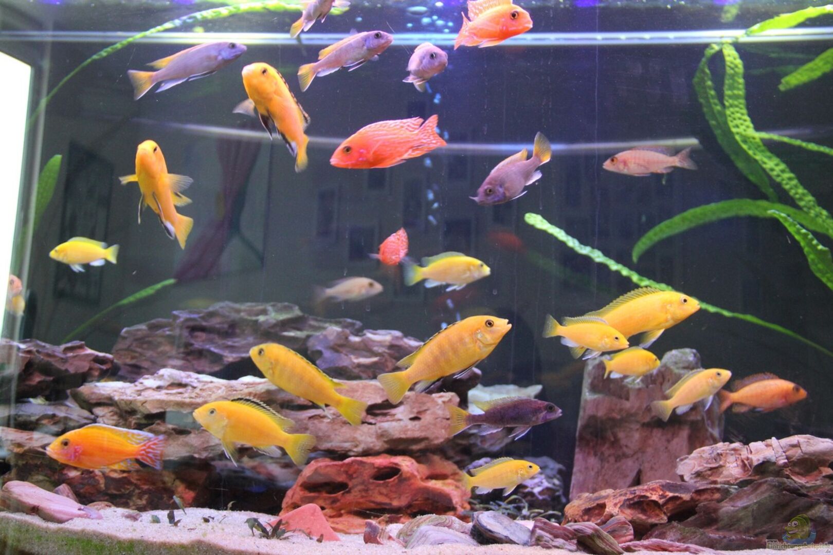Labidochromis Yellow 4/9 Aulonocara red fire 4/8 Pseudotropheus. Acei 2/3 Antennenwelse 3 Habe von den Labis und red fire ständig Jungtiere, deshalb ist das Becken leicht überbesetzt