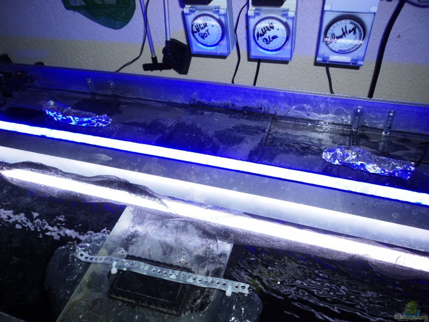 2 x Newave Zirkulationspumpen NWA 1000 Durchfluss regelbar von 750 ??? 1400 Liter 2, 5 Watt pro Pumpe. Geschaltet werden die Pumpen über Zeitschaltuhren. Die Zeiten sind festgelegt und sind Zeitversetzt von 10.00 - 23.00 um eine unterschiedliche Strömung zu erzeugen . Umwelzpumpe AQUAEL 1100 l/h 14W gechaltet über Zeitschaltuhr peer Zufall und 12 Std. am Tag. Eheim Air pump 3704, 2 x 200 l/h Max, 5 w geschaltet über Zeitschaltuhr peer Zufall. Heizung im Filter integriert 210w 1 [...]