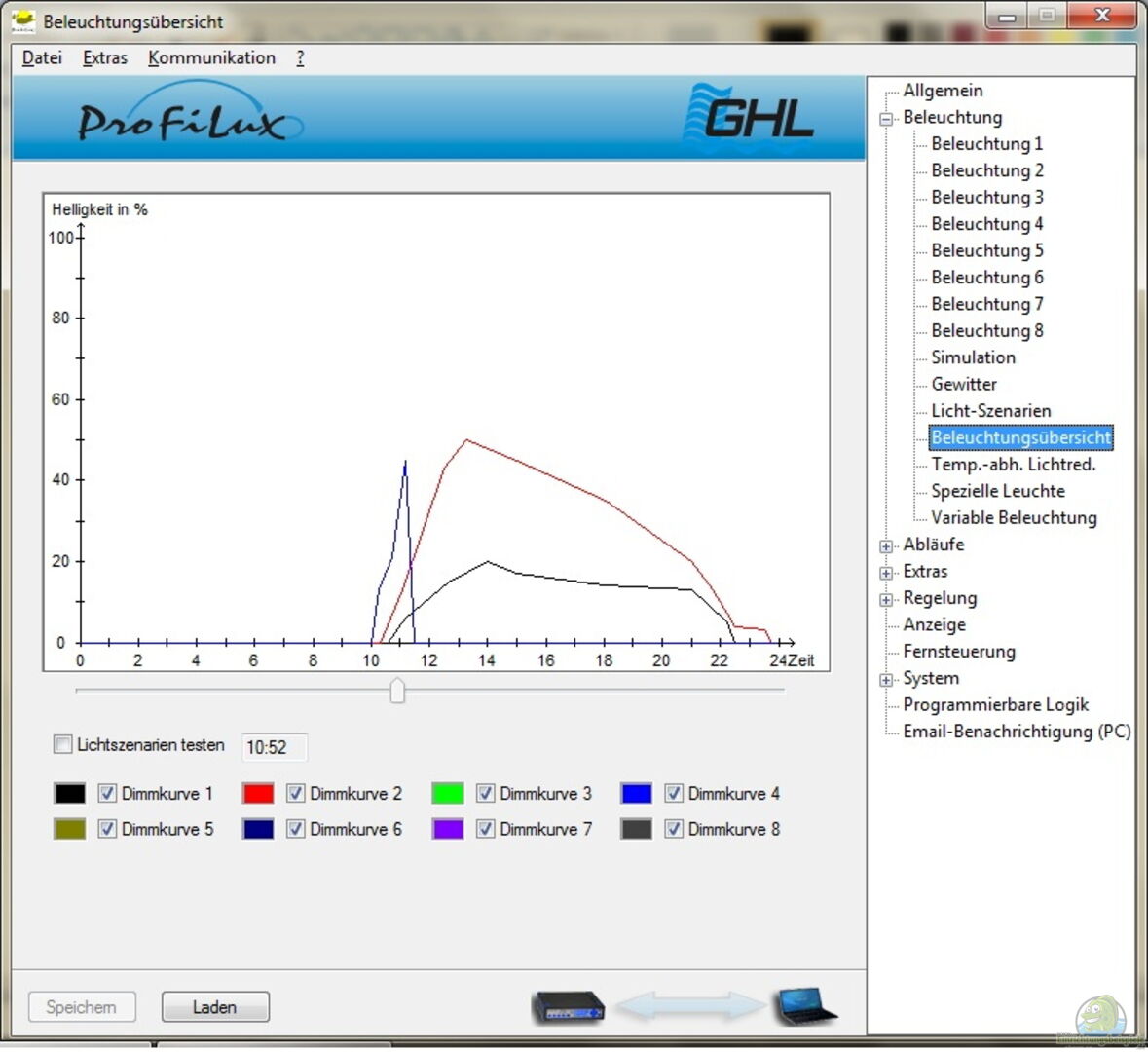 **Computer** Der Profilux II übernimmt neben der Steuerung der Beleuchtung zudem noch die Temperatur- und PH-??berwachung. Bei Werten unter 7, 9 wird ein Alarm ausgelöst. Aufgrund der guten Strömung im Becken wird der ph-Wert lediglich beim Wasserwechsel diesen Wert evtl. unterschreiten. Als ph-Elektrode verwende ich eine Glaselektrode von jolub. http://www.ph-elektroden.de/ ***Strömung* Tunze turbelle nanostream 6045 flow control. Strömungspumpe mit 1.500 bis 4.500 Liter Umwälzleistung [...]