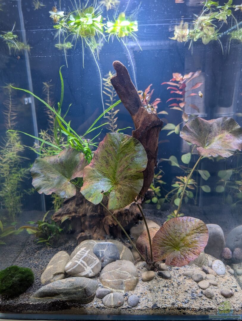 Hintergrund: Rotala rotundifolia Ludwigia repens "Rubin" Ludwigia palustris "Super Red" Mitte: Nymphea Lotus Lobelia cardinalis "Mini" Cryptocoryne undulata "Broad Leaf" Cryptocoryne nurii var. raubensis "Rosen Maiden" Aufsitzer: Anubias barteri var. coffeifolia Bucephalandra sp. "Kedagang" Bucephalandra micrantha "Needle Leaf" Microsorum trident Taxiphyllum barbieri "Java" Schwimmpflanze: Limnobium [...]
